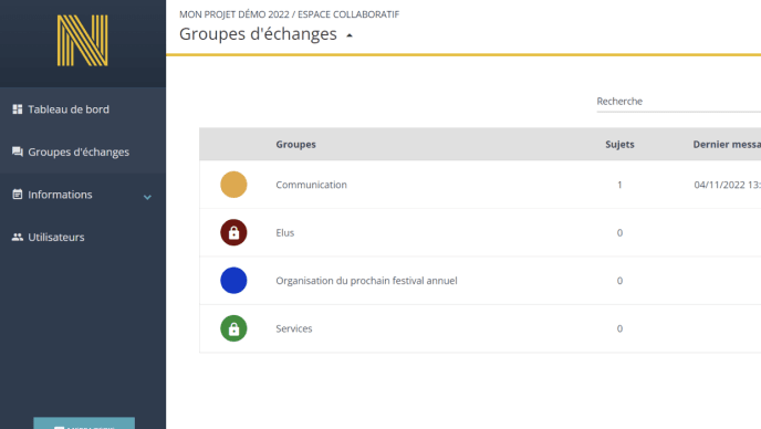 Grâce à l’espace collaboratif de Réseau des Communes, les élus et agents bénéficient d’un espace sécurisé et simple d’accès, qui leur permet de simplifier les échanges : groupes d'échanges, accès à un gestionnaire de fichiers…